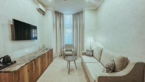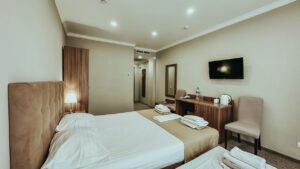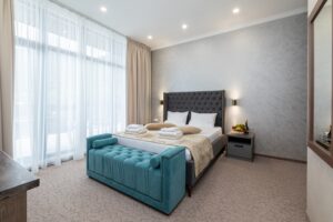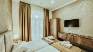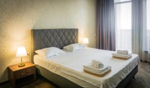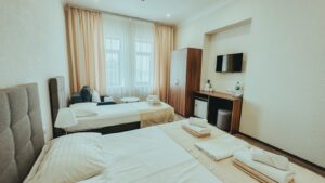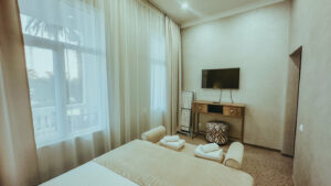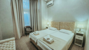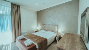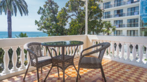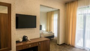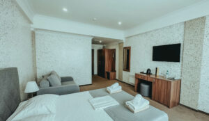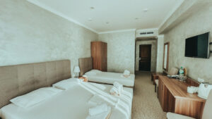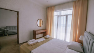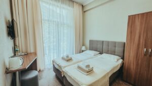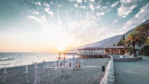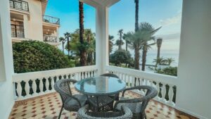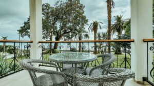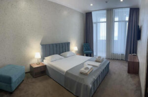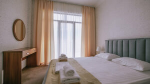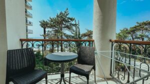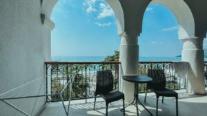 Отель расположен на первой береговой линии — 10 метров до моря.