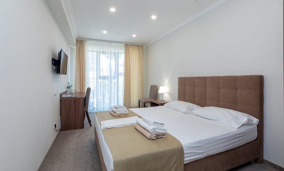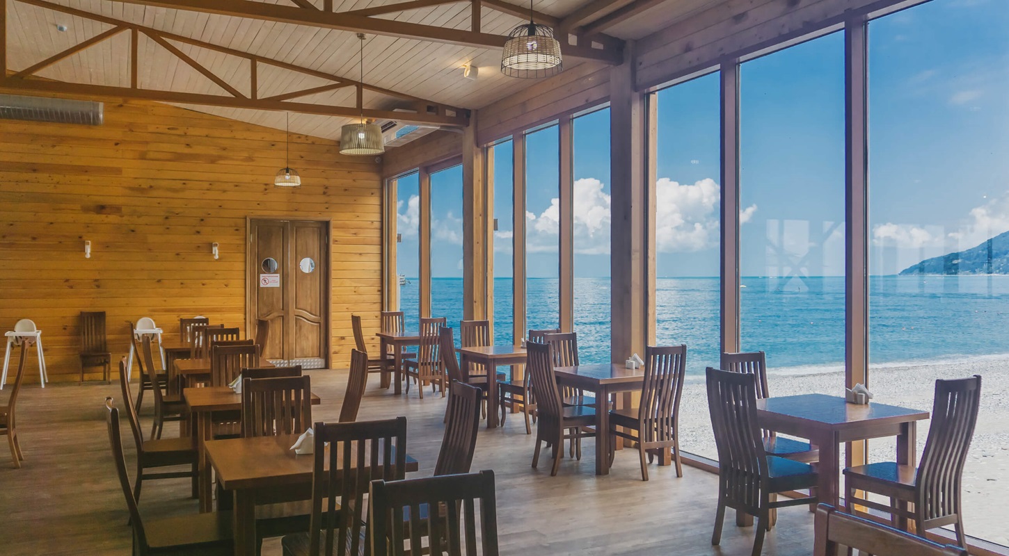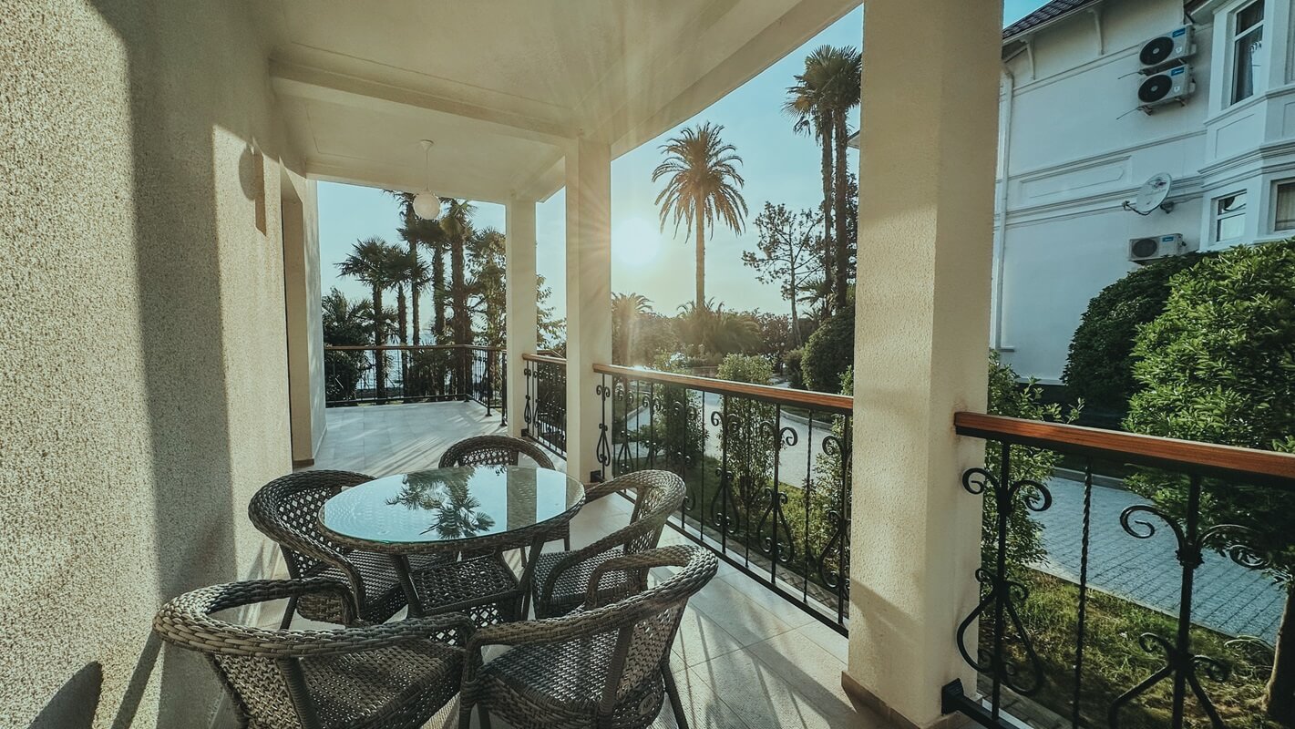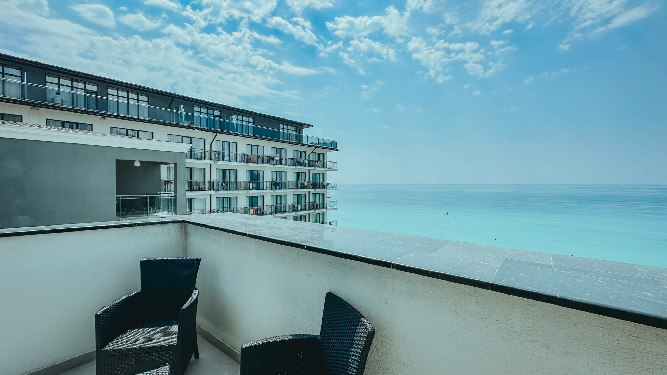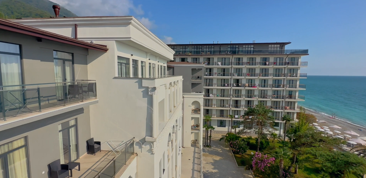 Отель расположен на первой береговой линии — 10 метров до моря.