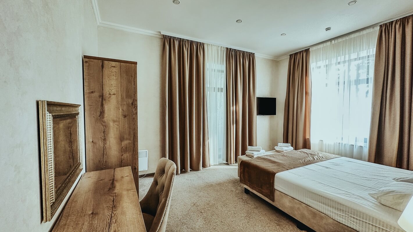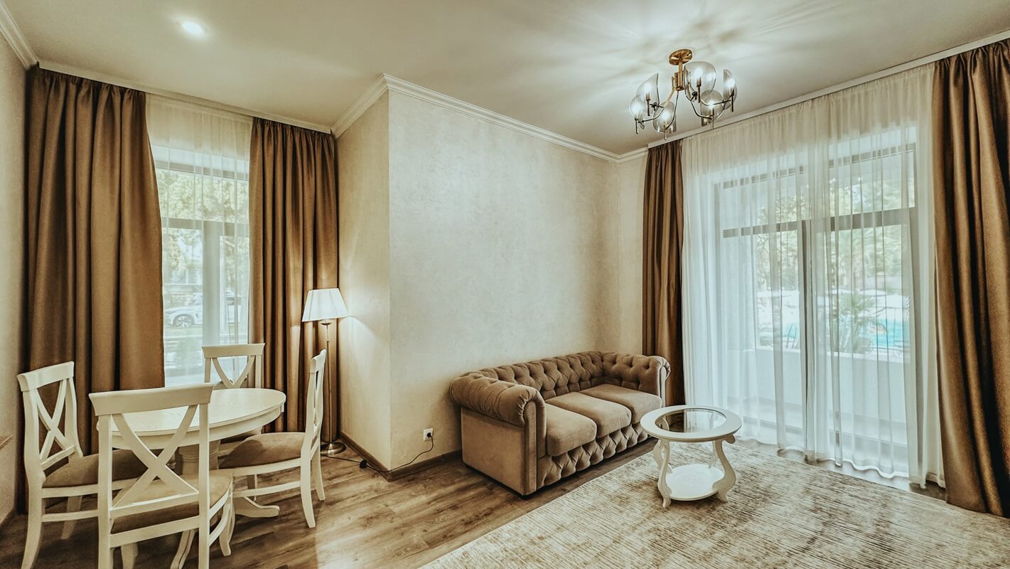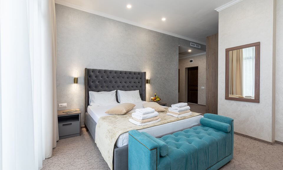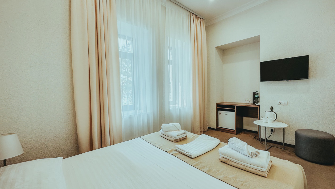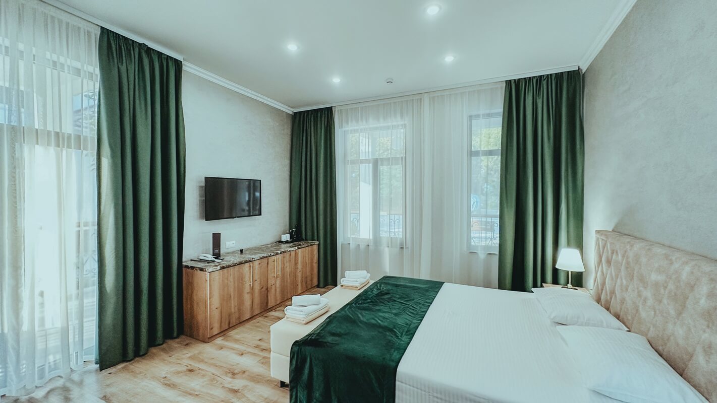 Отель расположен на первой береговой линии — 10 метров до моря.