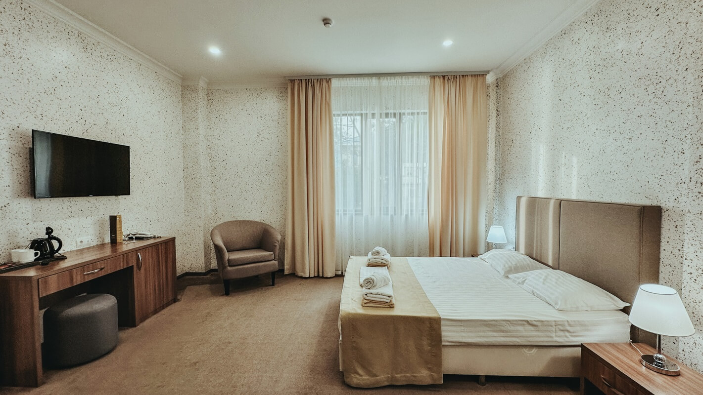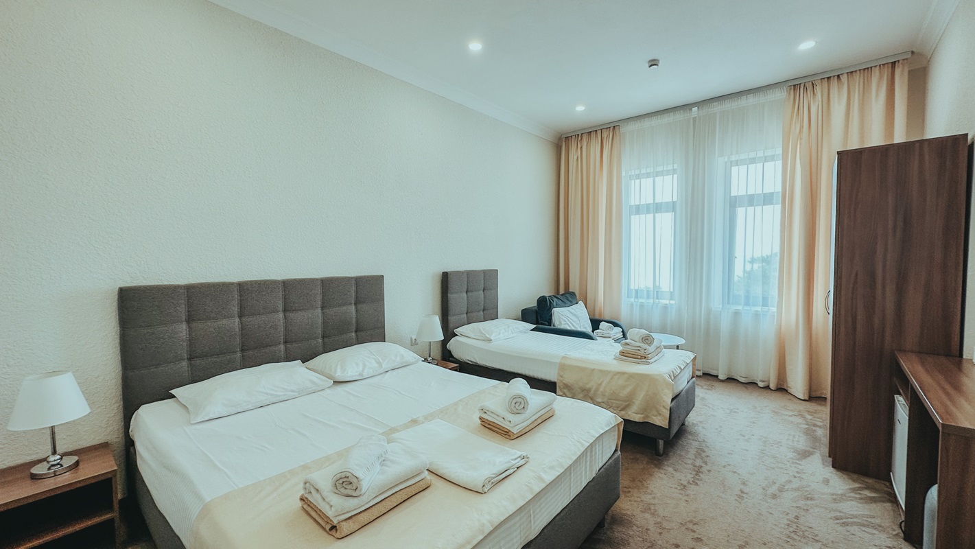 Дети до 5 лет принимаются бесплатно без предоставления места с питанием. Детская кроватка 1000 руб/сутки по предварительному запросу и при наличии.