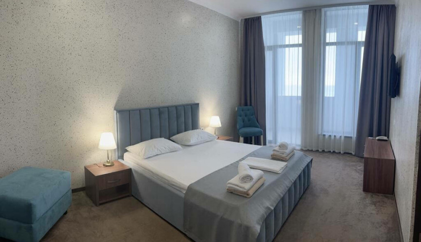 Комфортабельный двухместный двухкомнатный номер со всеми удобствами, оборудован двуспальной кроватью. Доп. место — предусмотрено (диван), стоимость доп. места — 3 000 ₽. Расположение 4-5 этаж