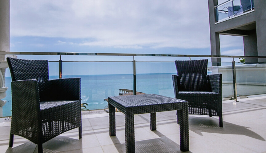 Отель расположен на первой береговой линии — 10 метров до моря.