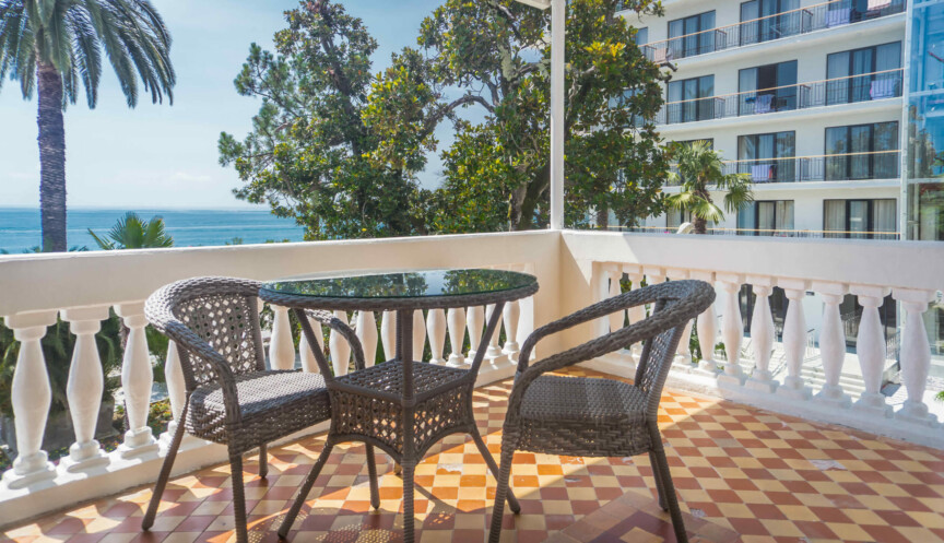 Отель расположен на первой береговой линии — 10 метров до моря.