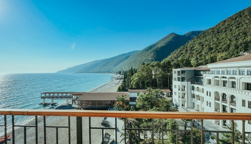 Отель расположен на первой береговой линии — 10 метров до моря.