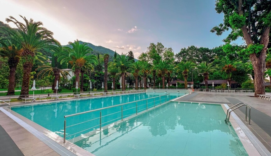 Отель Нарт расположился в самом сердце Республики Абхазия, на берегу моря, в поистине райском месте под названием Старая Гагра, территория занимает около 1,3 Га. Сочетание прекрасного парка, набережных, роскошного пляжа и комфортабельных номеров делают этот отель одним из лучших мест для отдыха в Абхазии. Все здания отеля отремонтированы в 2022 году. На территории субтропического парка расположено пять корпусов, в которых в общей сложности 250 номеров.