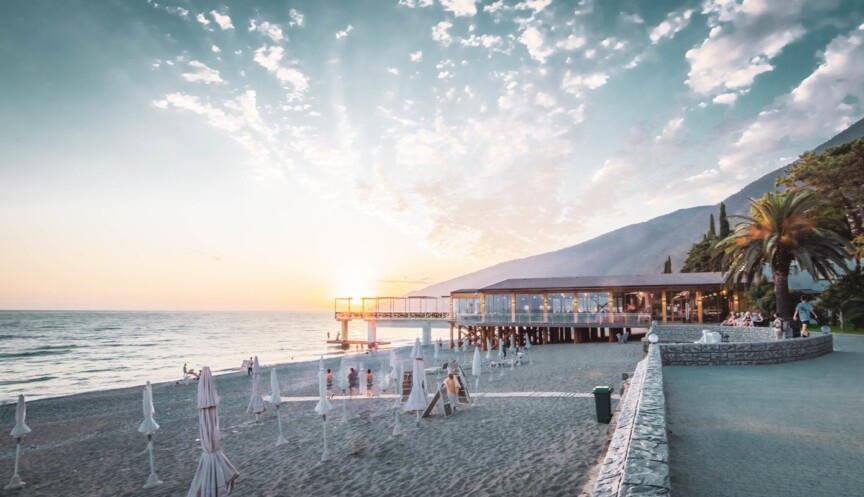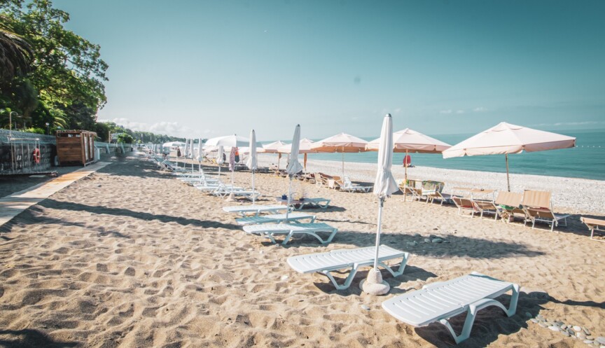 Отель расположен на первой береговой линии — 10 метров до моря.