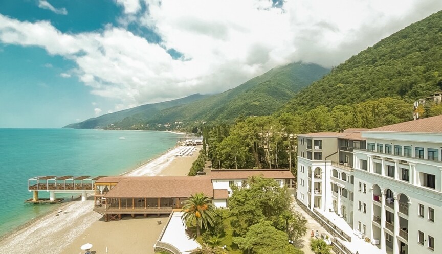 От ж/д вокзала или аэропорта г. Адлер маршрутным такси «Адлер-Псоу» до пограничного пропускного пункта. Далее рейсовым автобусом, маршрутным такси или воспользоваться трансфером от аэропорта или ЖД Адлер.